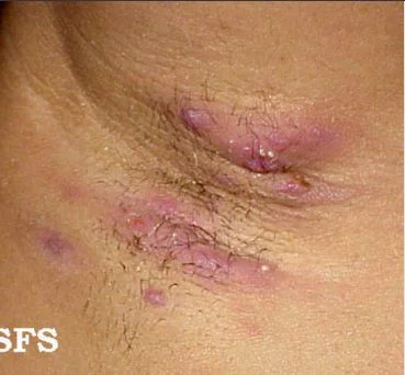 - Distribution: Intertriginous areas (Axillae, inguinal, perineal, inframammary).