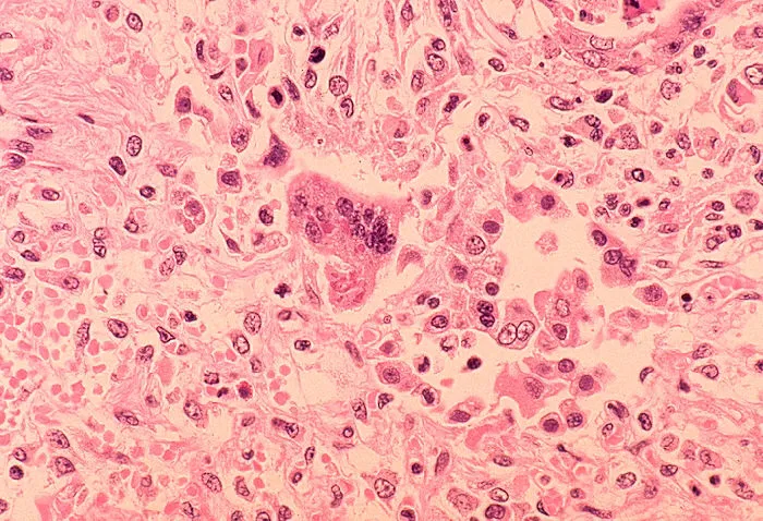 - Can also be a primary viral pneumonia, known as Hecht’s giant cell pneumonia. This interstitial pneumonitis is characterized by multinucleated giant cells and is often seen in immunocompromised patients but can occur in healthy individuals and carries a high fatality rate.