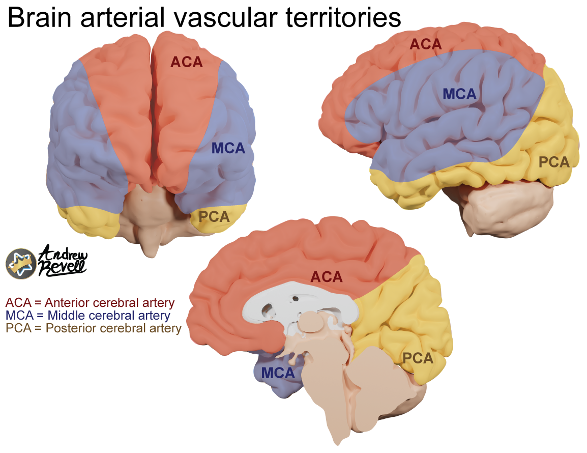 - Supplies: Lateral surfaces of all four lobes, including motor/sensory cortices for the upper limb and face, and language areas (Broca’s, Wernicke’s).