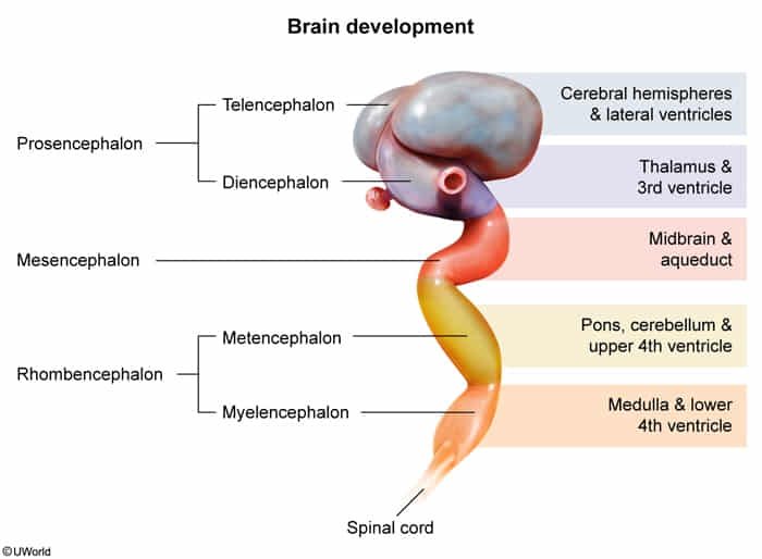 - Adult Structures: Cerebral hemispheres, basal ganglia, hippocampus, amygdala