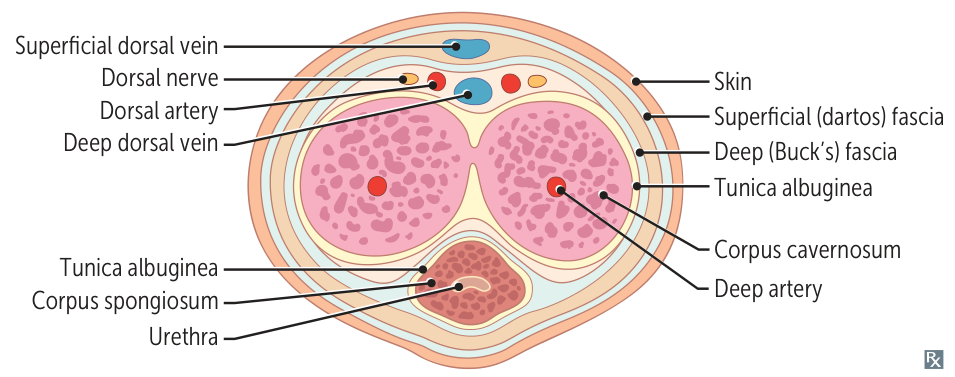 - Engorged corpora cavernosa compress the subtunical venules against the rigid tunica albuginea.