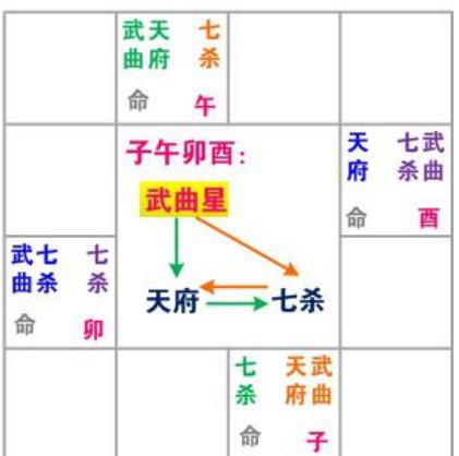 花之星,与七杀星同宫必然早婚甚而桃花滚滚,若遇人不淑义无反顾,宁愿选择与对方亡命天涯,或 为对方堕入风尘亦无所惜,属敢爱且执着到底;故古书云【女命福不全、或为娼妓之命】。 辅导上应多加强接触史书琴艺,藉后天的调教与修养,调和其性刚、倔强的个性。另长大成人之后, 以其职业的工作性质平衡其本性,亦是辅导之良方,如女警、空中小姐、女秘书,女主持人,舞蹈老 师、女教官……。