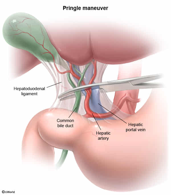 - Pringle Maneuver: Clamp hepatoduodenal ligament here to stop liver bleeding.