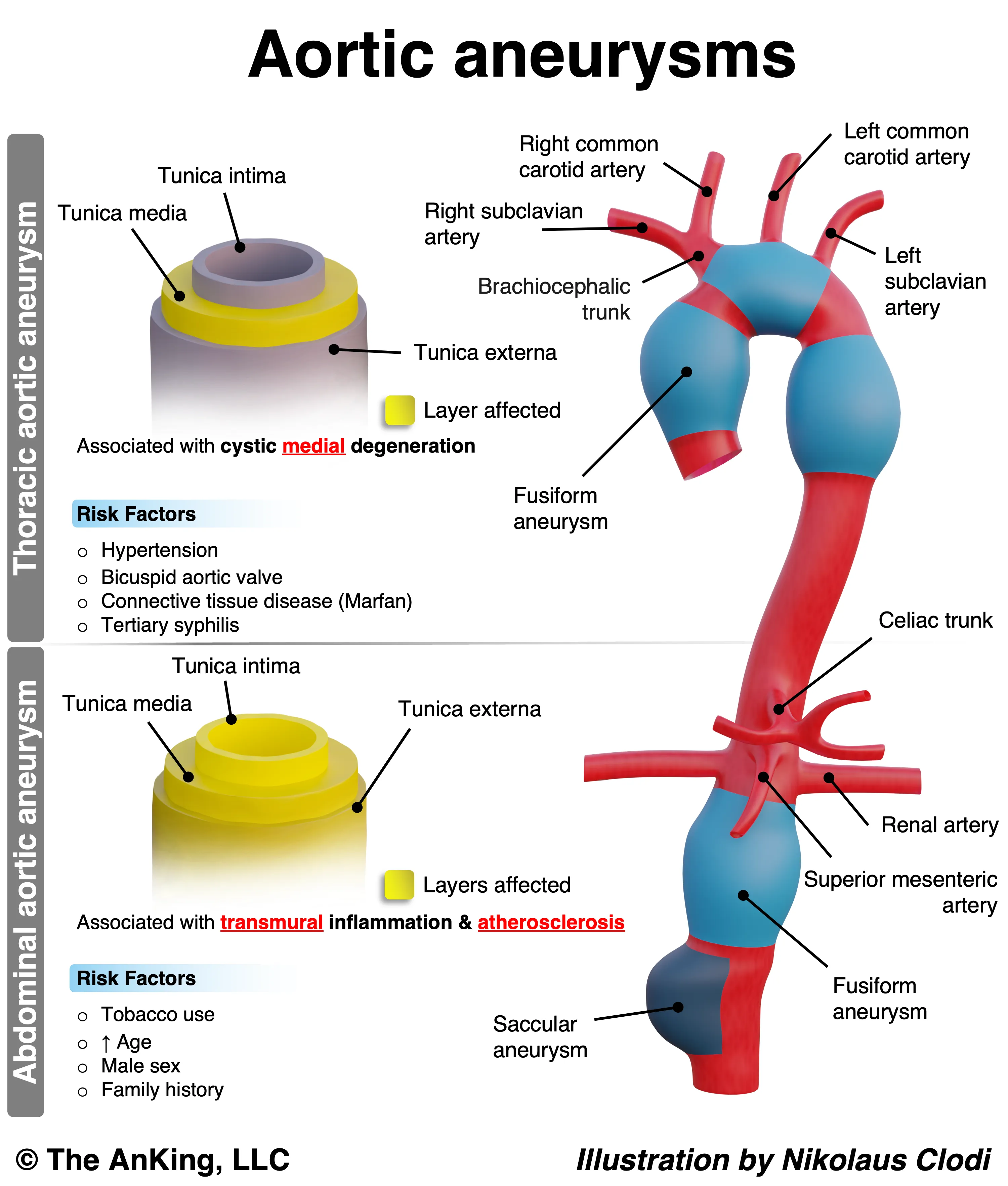 | #1 Risk Factor | Atherosclerosis (Smoking) | Hypertension / Marfan | Hypertension |