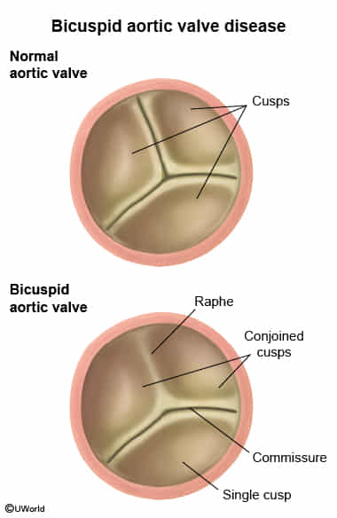 - Bicuspid aortic valve (BAV): fusion of two of the three aortic-valve leaflets in utero