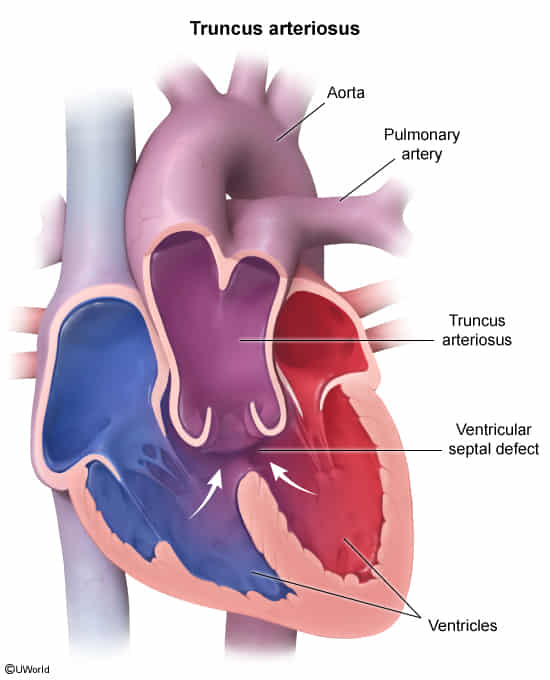 - Anatomy: Single vessel overrides a VSD; supplies Systemic, Pulmonary, and Coronary circulations.