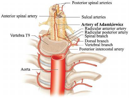 - Aortic surgeries (e.g., AAA repair) affecting the Artery of Adamkiewicz (major supplier to ASA, typically T8-L1). t