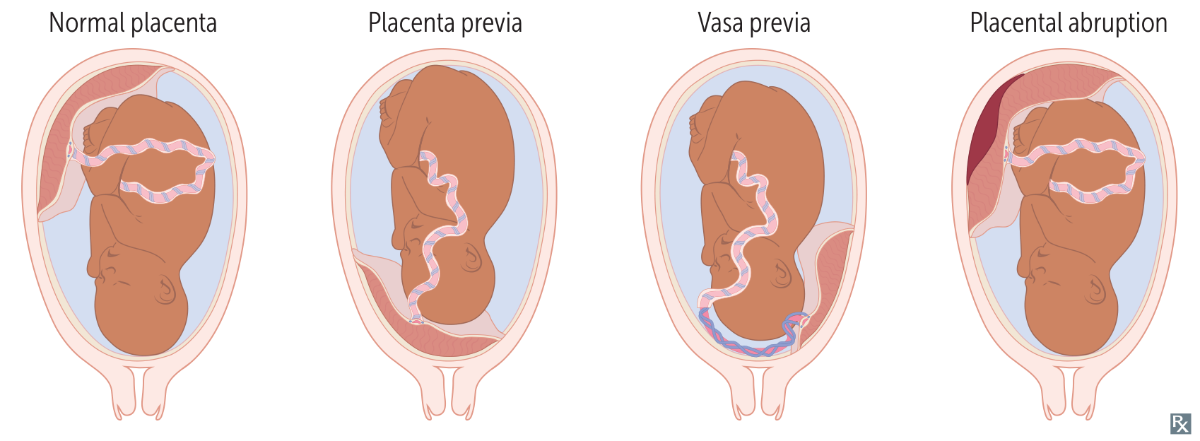 - Placental anomalies, such as: